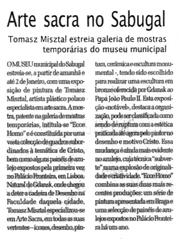 Título: Arte sacra no Sabugal. Tomasz Misztal estreia galeria de mostras temporárias do museu municipal