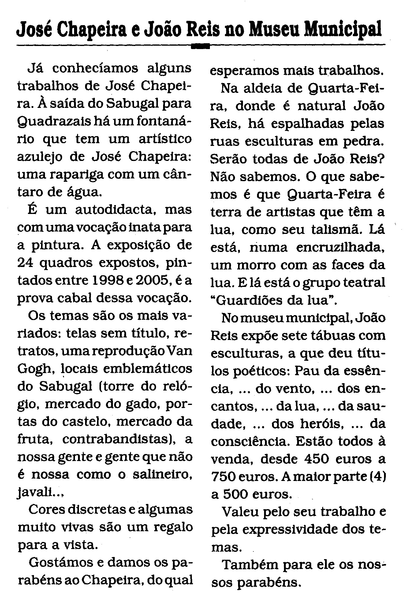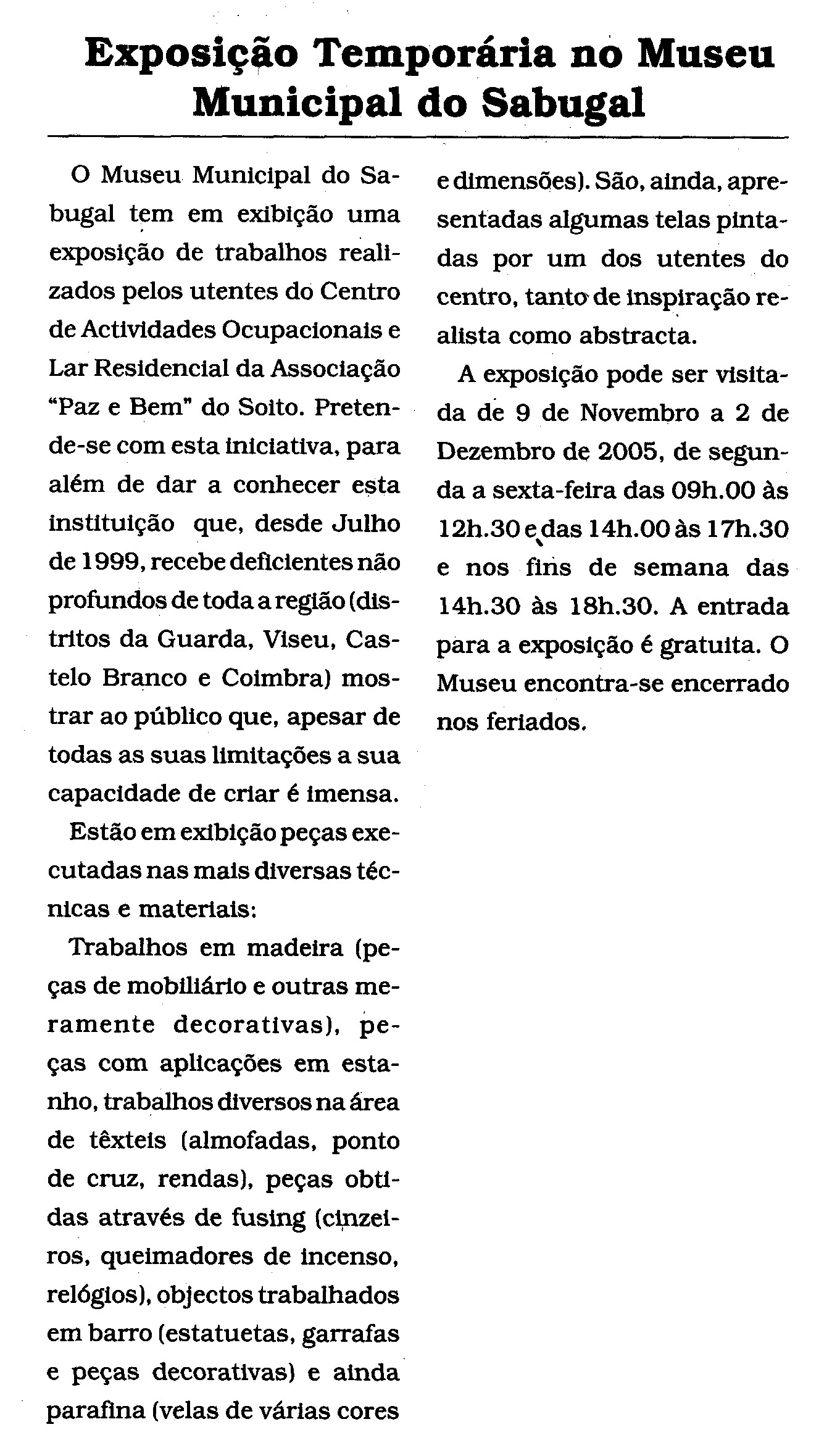 23 de dezembro de 2005 Cinco Quinas Página: 5 Título: 25 Posters de sítios arqueológicos da Beira Interior estiveram em exposição no Museu Municipal do Sabugal
